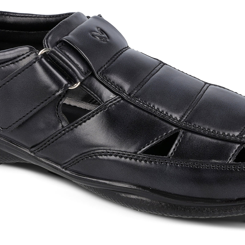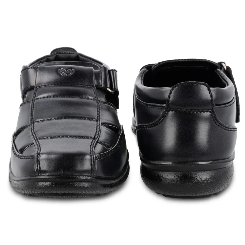 Step confidently into every occasion with the Walkaroo WF6255 Men’s Roman Sandals in Black. These sandals are thoughtfully designed as a fusion of shoes and sandals, offering the structure and coverage of footwear with the breathability of open sandals.